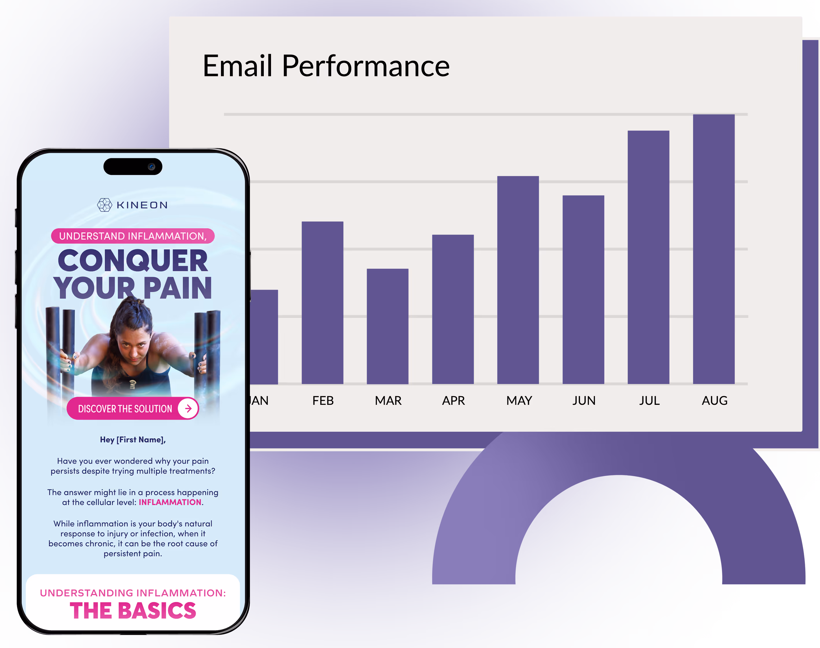 This data-driven approach refined messaging around Kineon's technical products, optimized key touchpoints, and consistently improved performance—achieving 50%+ open rates.